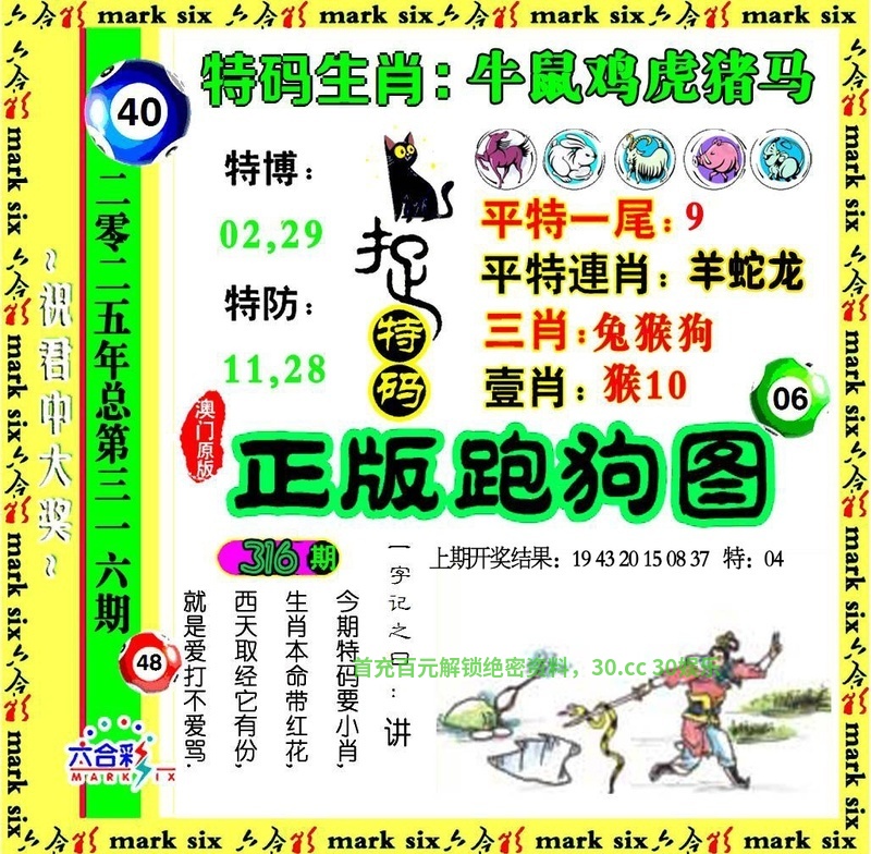 | 316期:阴阳两肖【阴肖+牛猴】开:马24准 |